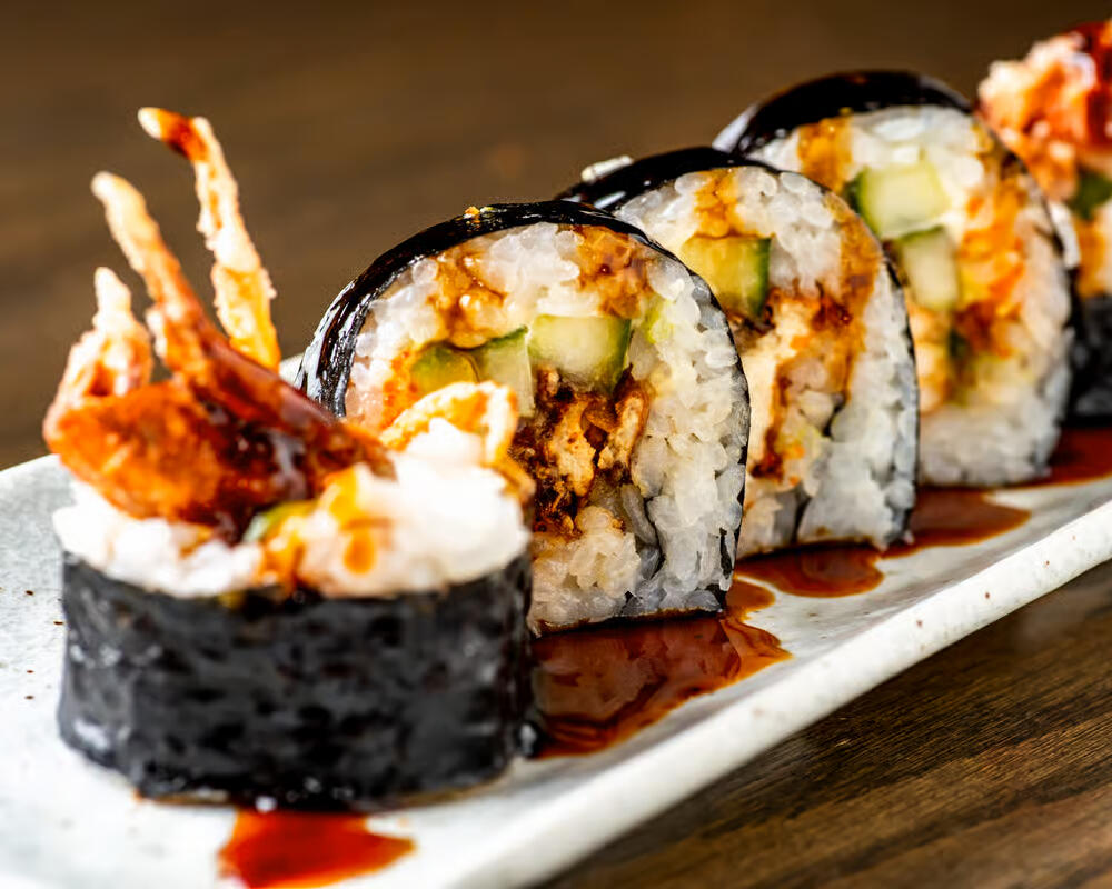 | Okonomi Yaki | Savory seafood pancake, eel sauce, spicy mayo, seaweed flakes, & pickled ginger. Choice of Veggie, or Seafood |